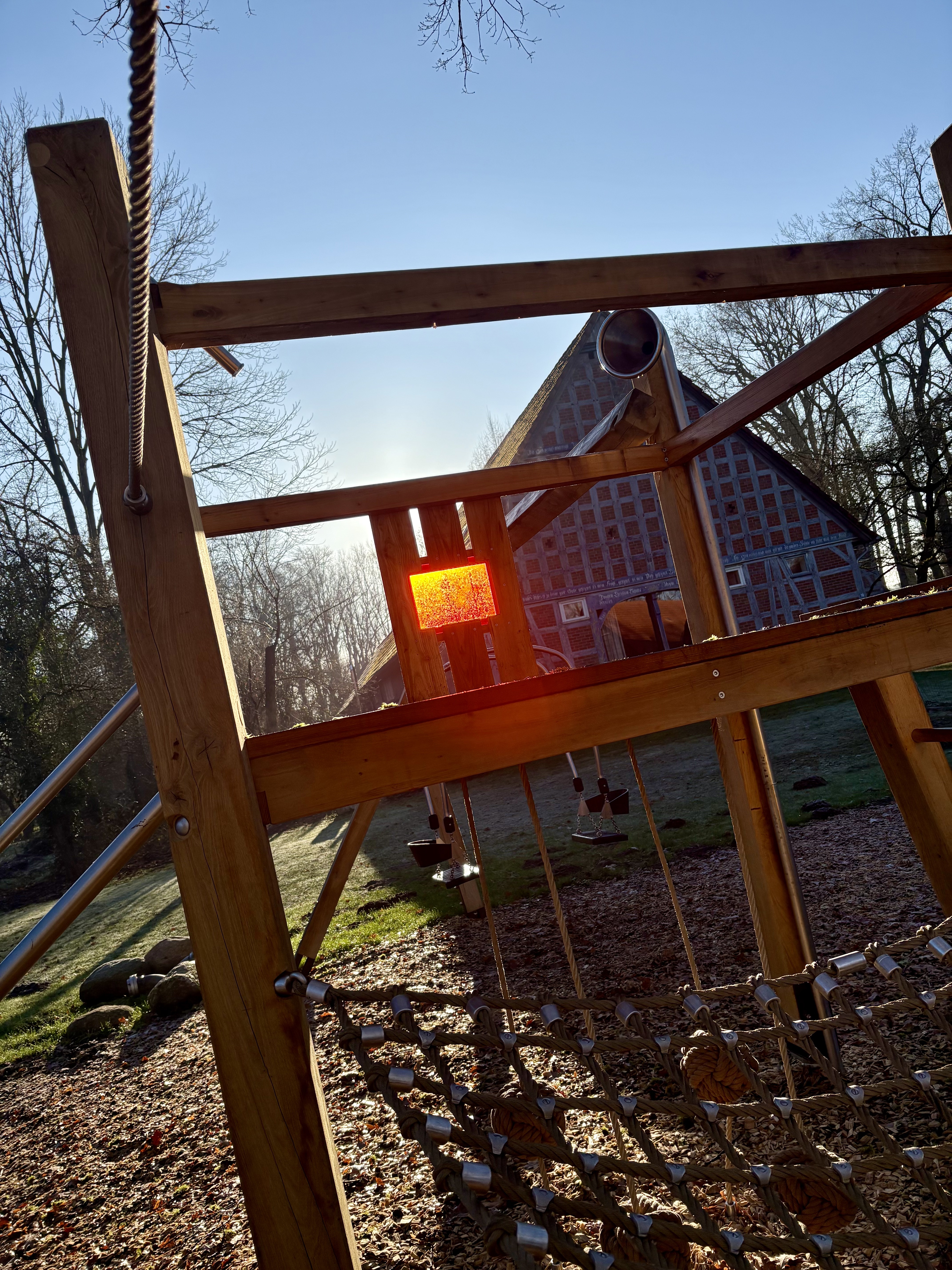 Die Kombination aus Podestanlage, Rutschstange, Kletterelementen, Hängeseilen, Netz und Doppelschaukel ermöglicht abwechslungsreiche Bewegungsabläufe und spricht unterschiedliche Altersgruppen an. Offene Strukturen fördern freies Spiel, Begegnung und Rollenspiel, während verschiedene Höhen und Schwierigkeitsgrade Motorik und Koordination unterstützen.