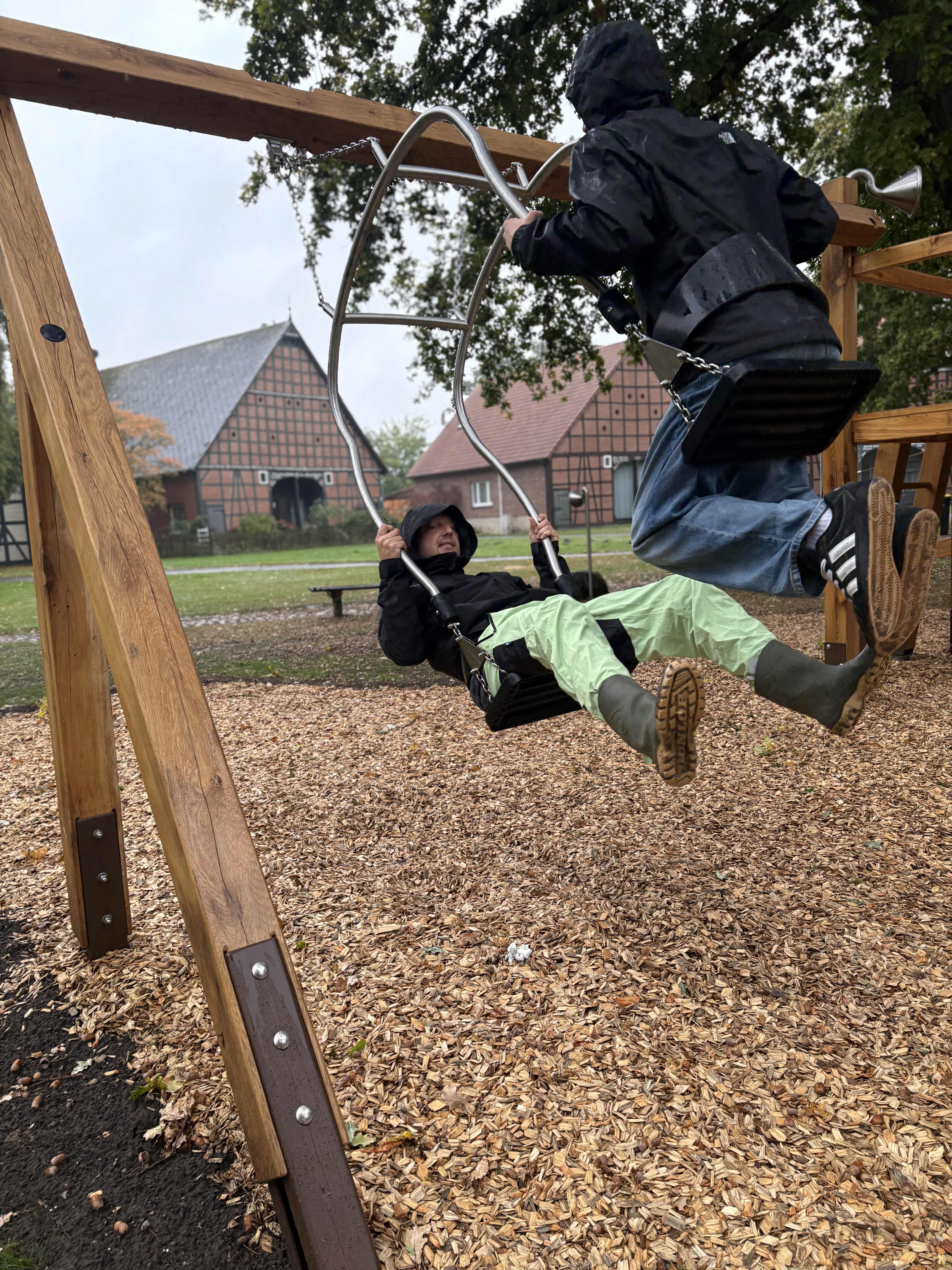 Durch die robuste Holzbauweise und die reduzierte, klare Gestaltung fügt sich die Anlage harmonisch in das dörfliche Umfeld ein und schafft einen langlebigen Spielort mit hoher Aufenthaltsqualität – ideal für öffentliche Freiräume, Bildungsorte und gemeinschaftlich genutzte Flächen.